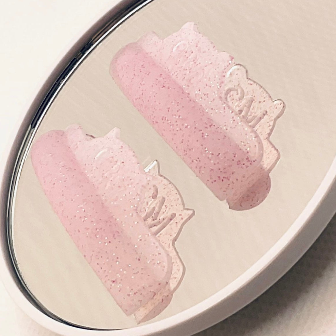 - Acabado glitter rosa súper cute